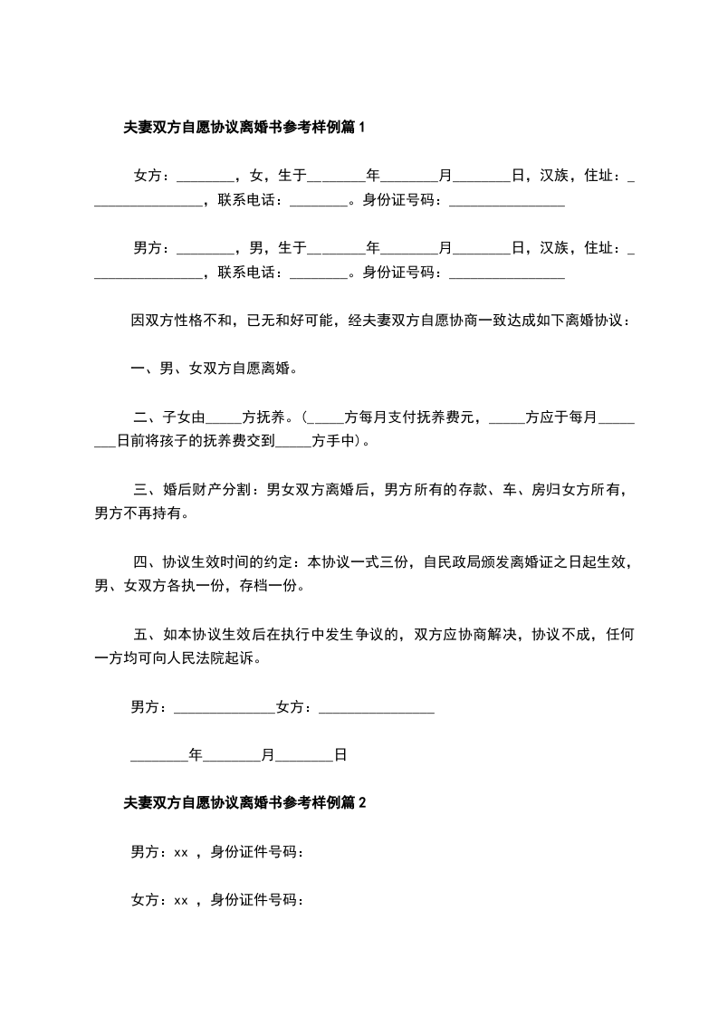 我们自愿离婚,双方均具有完全民事行为能力,完全同意本协议书的各项安排,亦无其它不同意见。