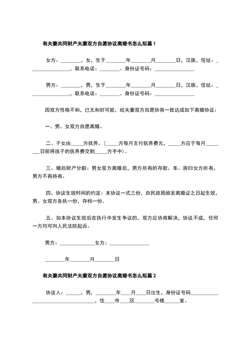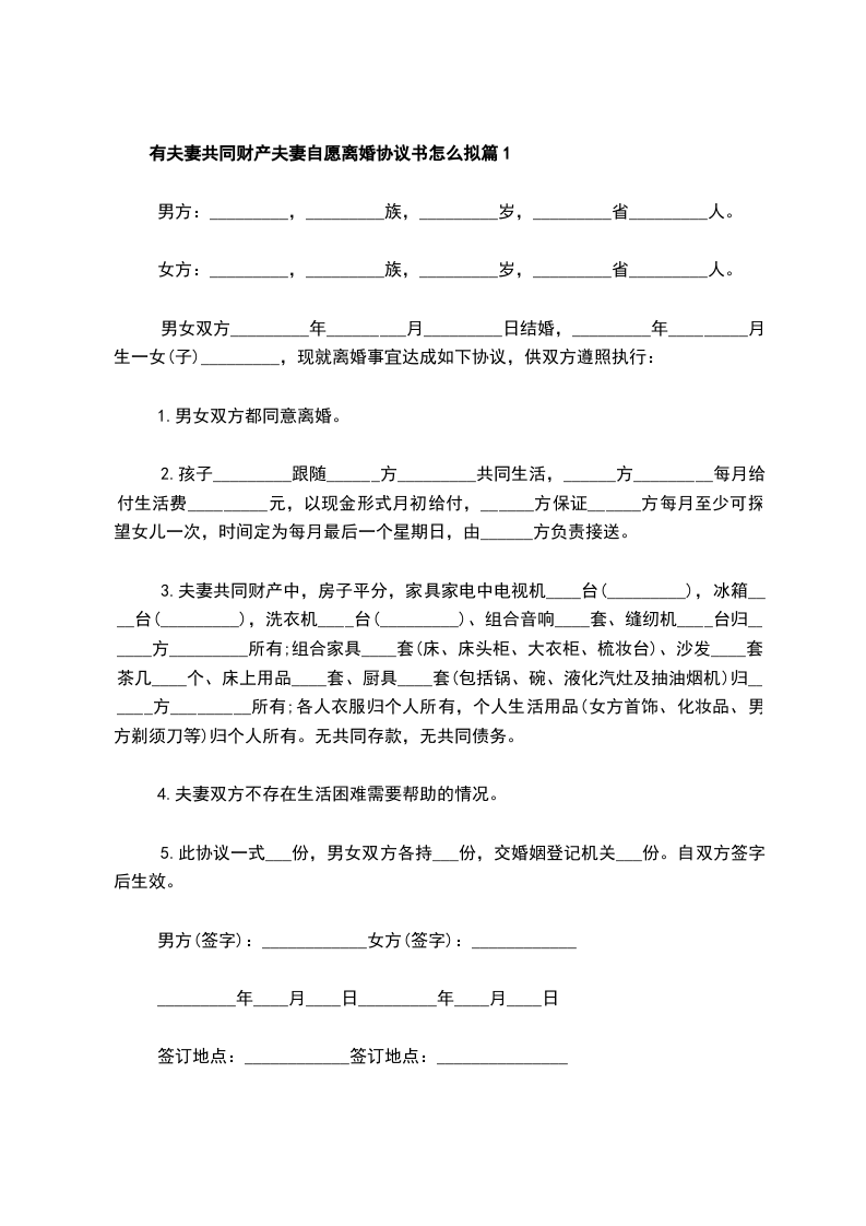 有共同财产夫妻自愿离婚协议怎么拟篇1
