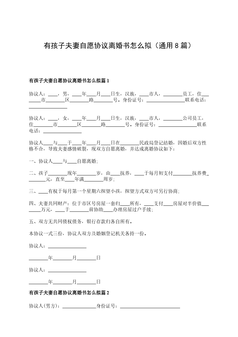 有孩子夫妻自愿协议离婚书怎么拟篇8
