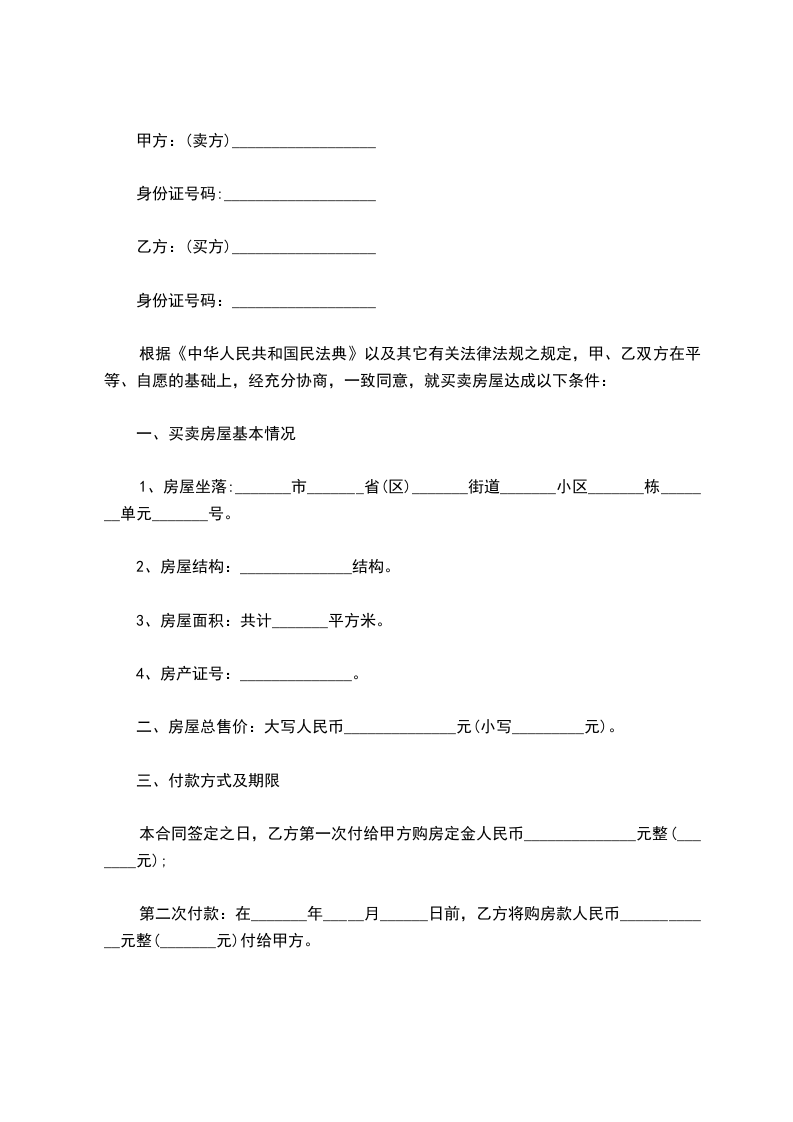 依据《中华人民共和国民法典》及相关法律、法规之规定,甲乙双方在平等、自愿的原则,就房屋买卖事项,经协商一致,并经房屋宅基地所有权人同意,达成如下协议: