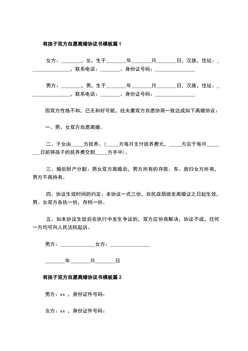 一、男方__与女方__自愿解除婚姻关系,双方自愿签订本离婚协议。孩子归男方,女方无需支付抚养费。