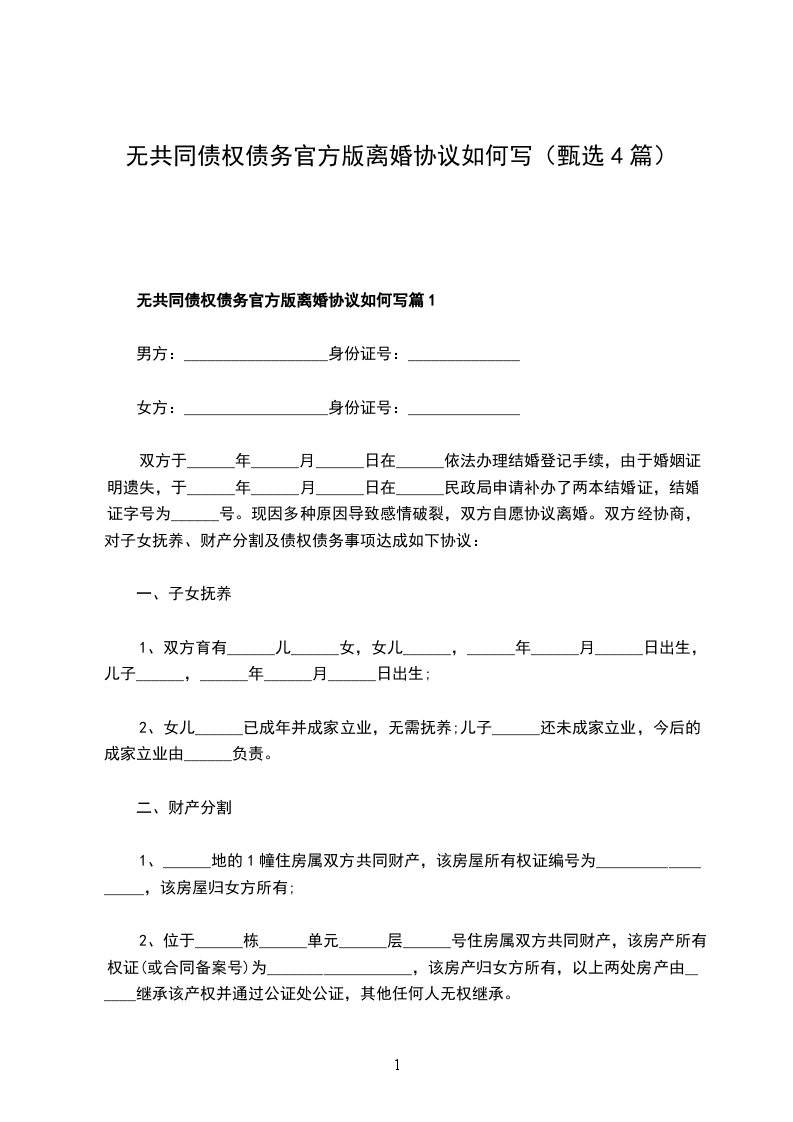无共同债权债务官方版离婚协议书篇4