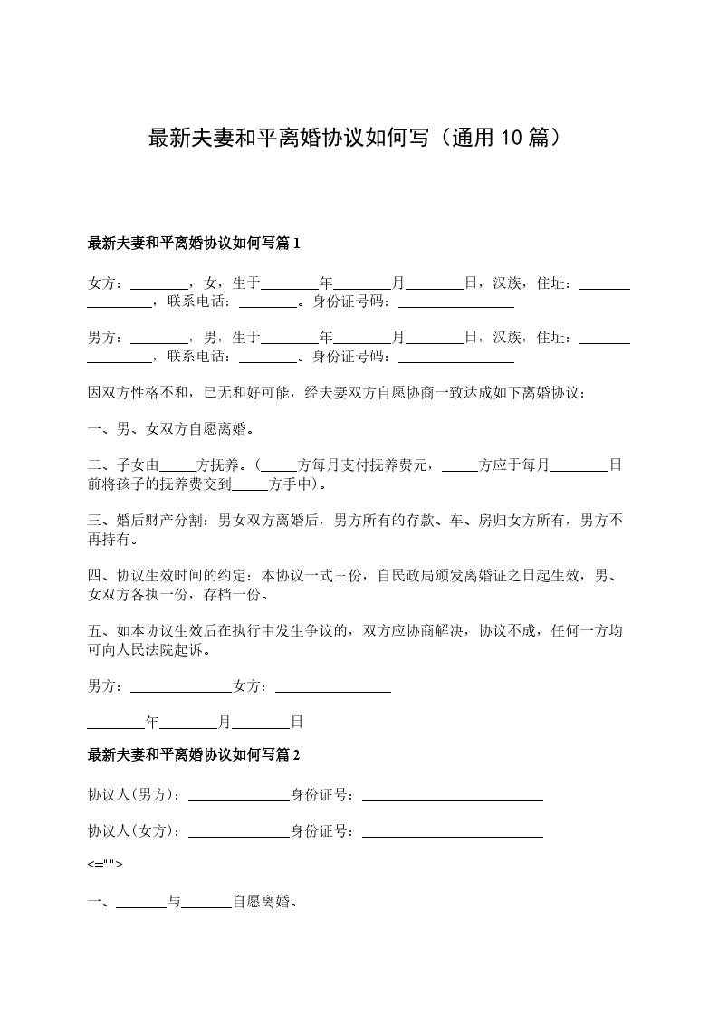 最新夫妻和平离婚协议如何写篇10