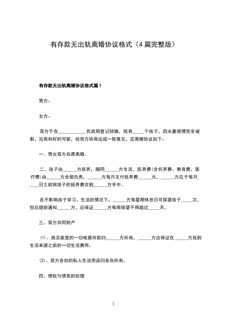 有存款无出轨离婚协议书参考样板篇1