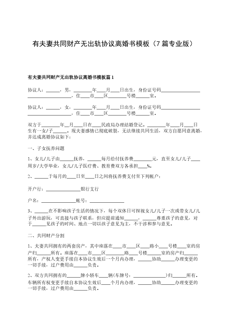 有共同财产无出轨协议离婚范本模板篇7