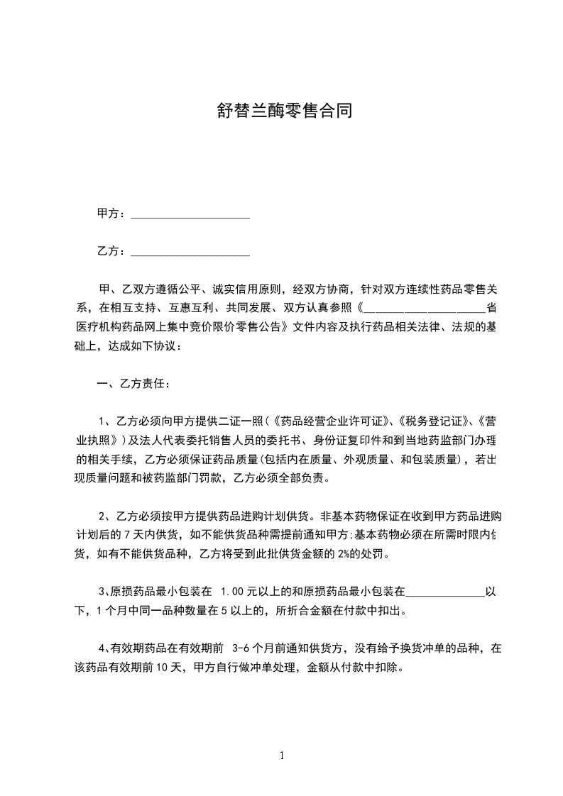 根据《中华人民共和国民法典》,甲、乙双方经协商确定,甲方向乙方购买药品。为明确双方责任和权利,特签订本合同,共同遵守。具体条款如下: