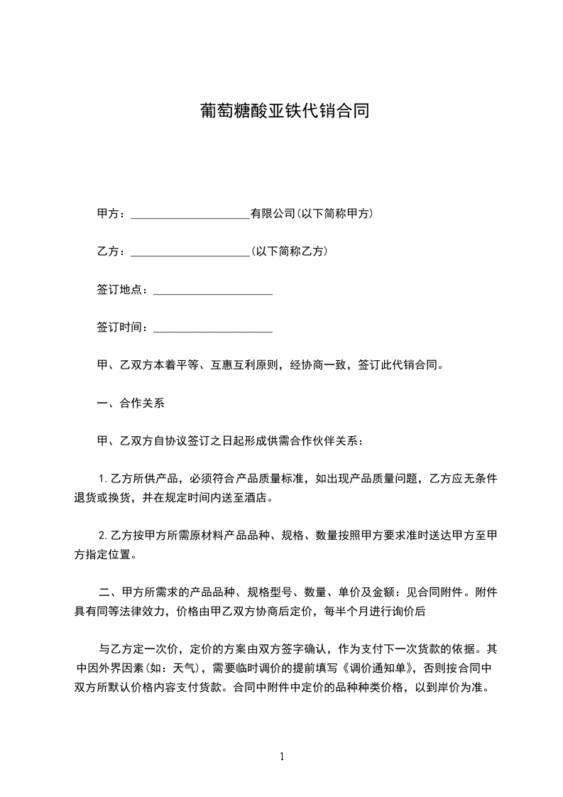 甲、乙双方本着平等、互惠互利原则,经协商一致,签订此代销合同。