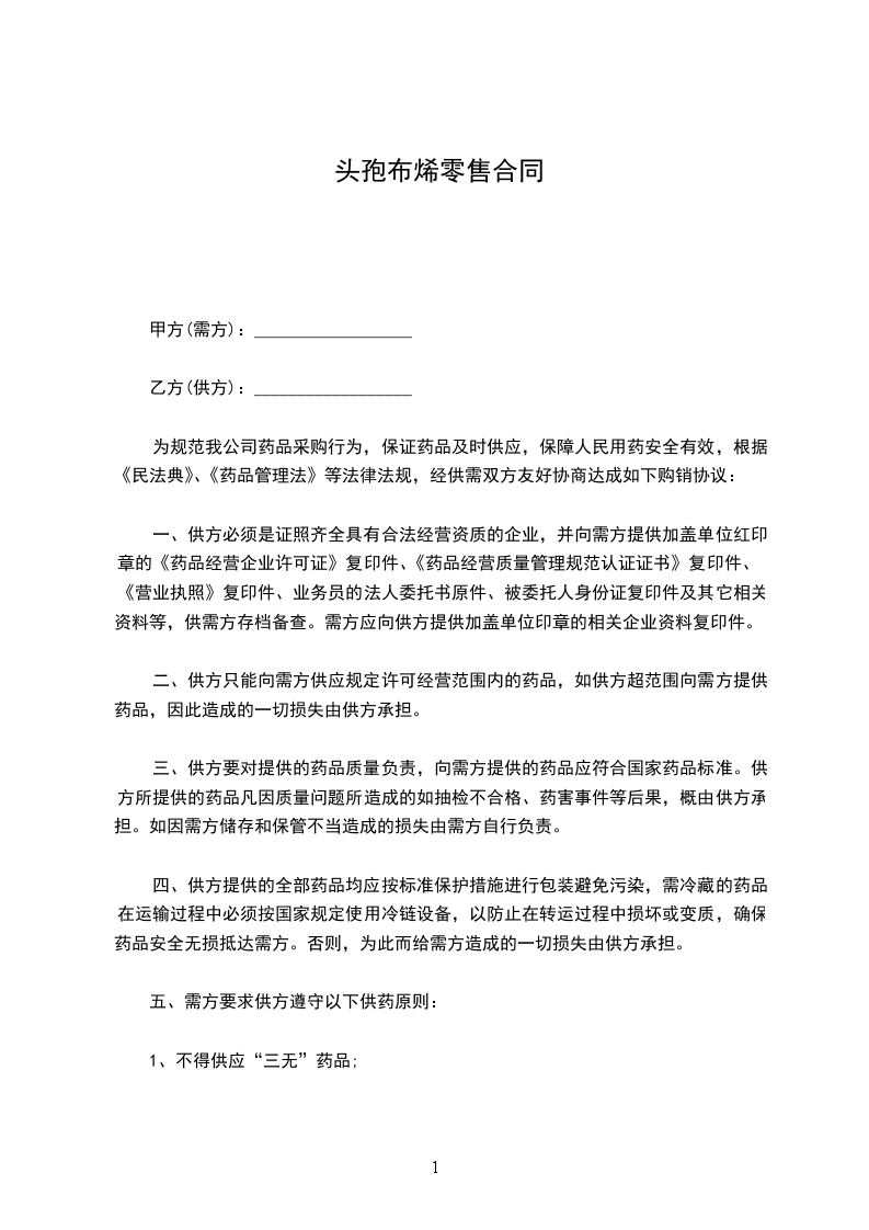五、需方要求供方遵守以下供药原则: