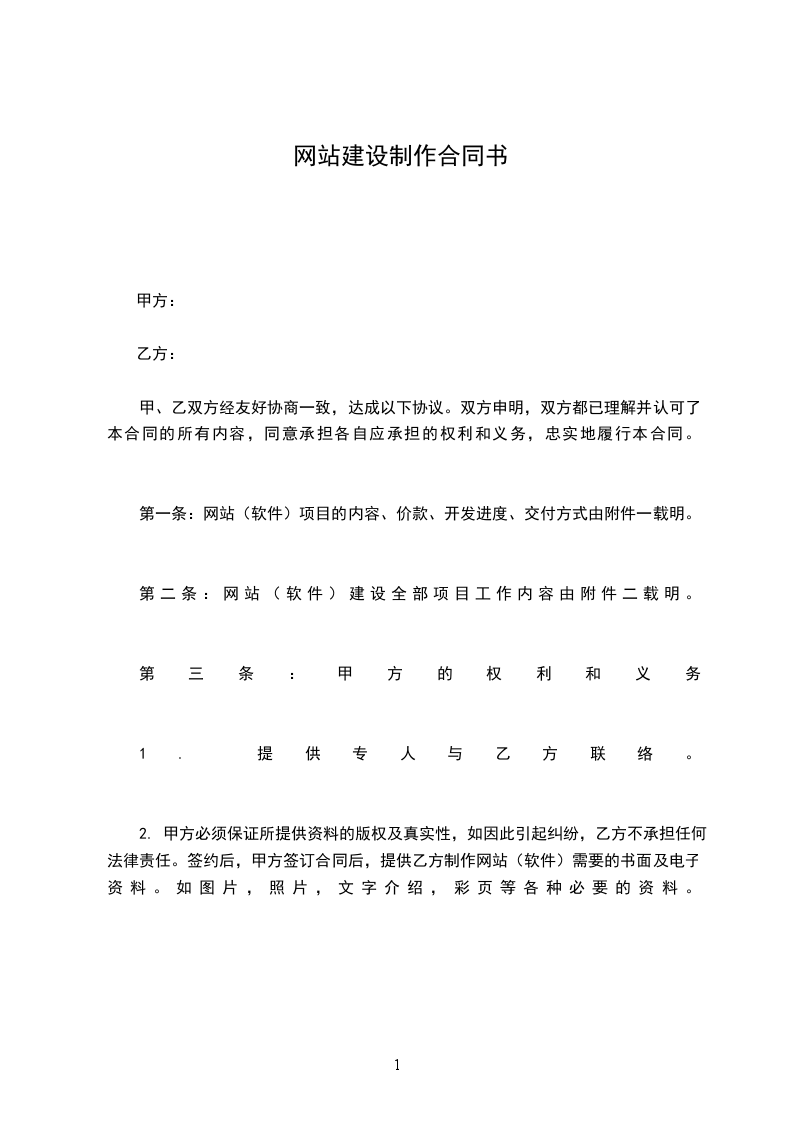第一条:网站(软件)项目的内容、价款、开发进度、交付方式由附件一载明。