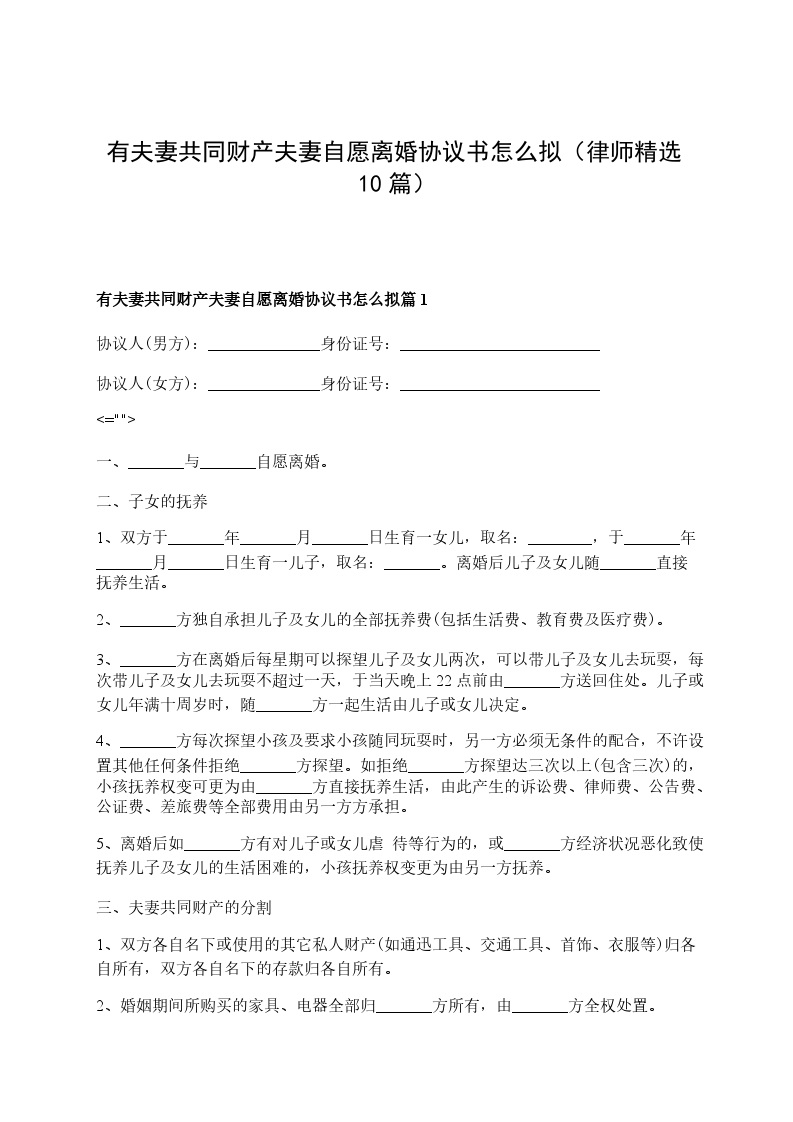 有夫妻共同财产夫妻离婚协议怎么拟篇10