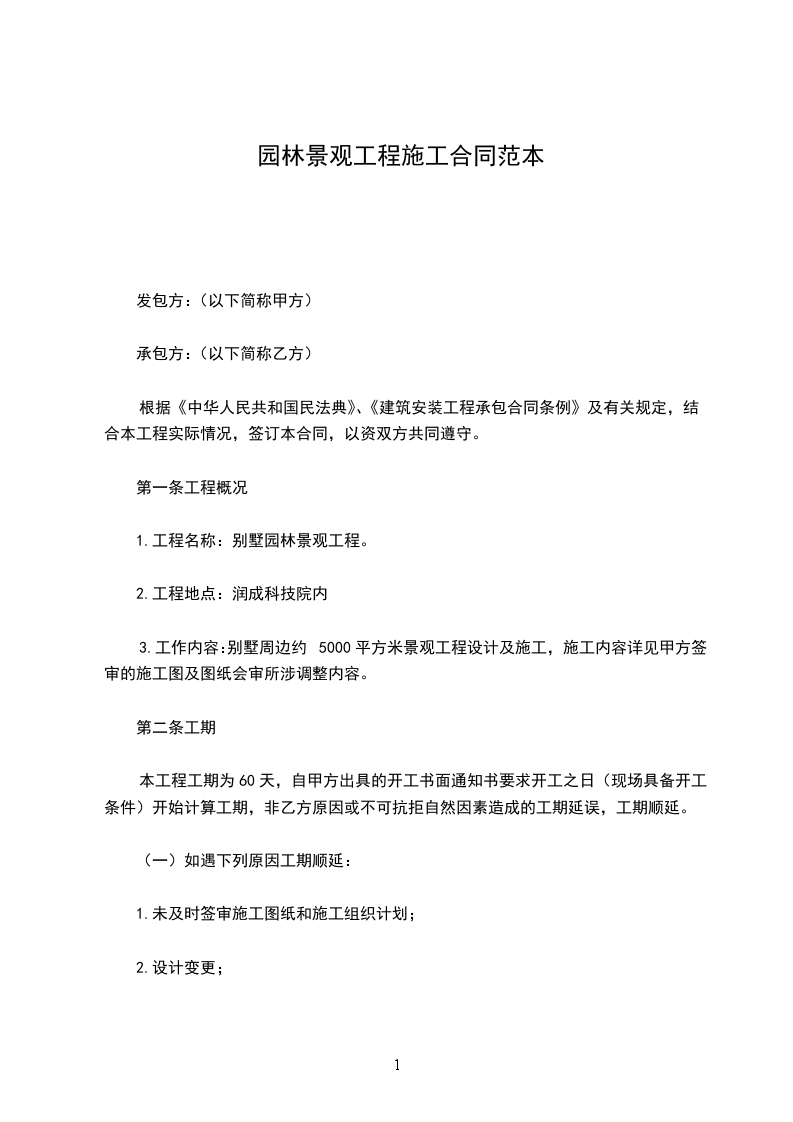 1.保修期:从乙方递交竣工报告后的第七日起算,保修责任按国家有关规定执行。其中植物保活期一年,工程部分保修期为一年。