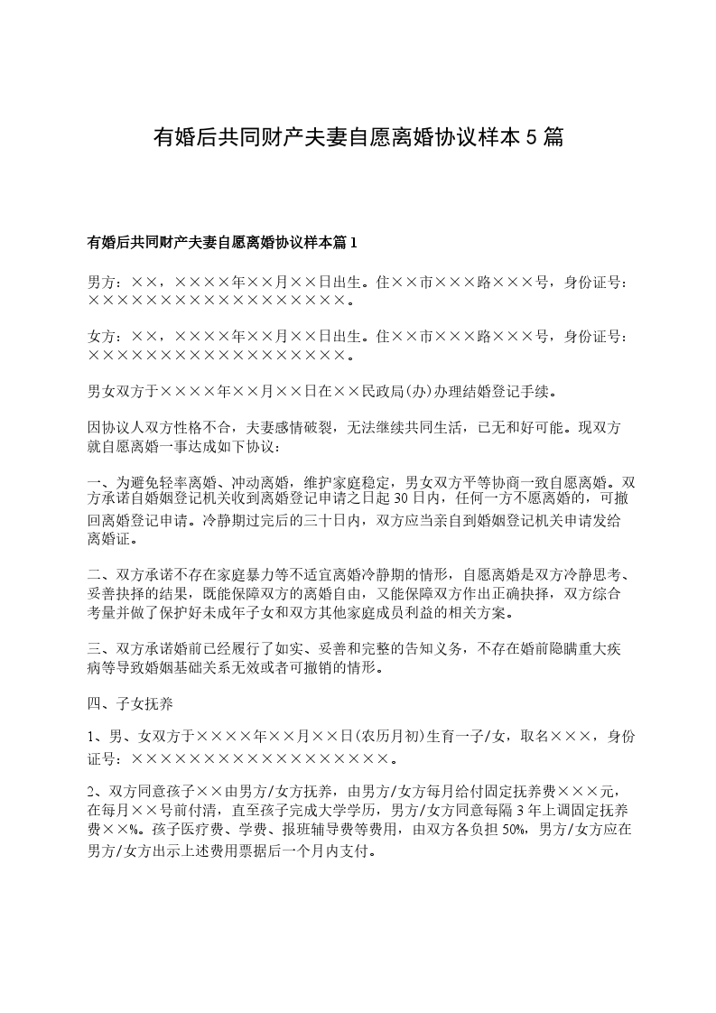 有婚后共同财产夫妻自愿协议离婚书如何写篇4