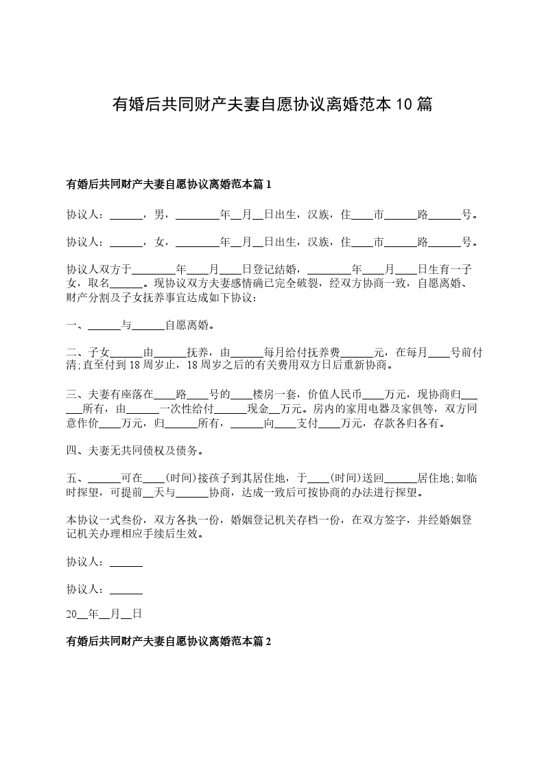 有婚后共同财产夫妻自愿协议离婚书如何写篇2