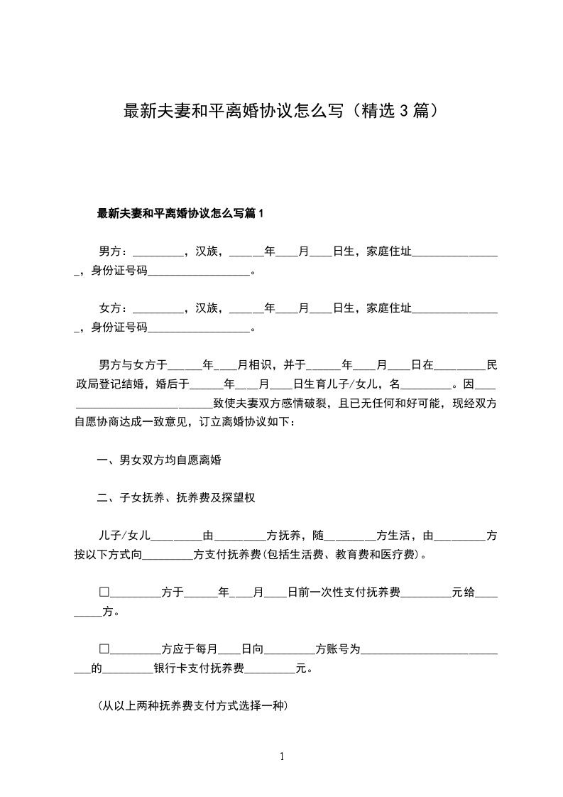 最新夫妻和平离婚协议怎么写篇3