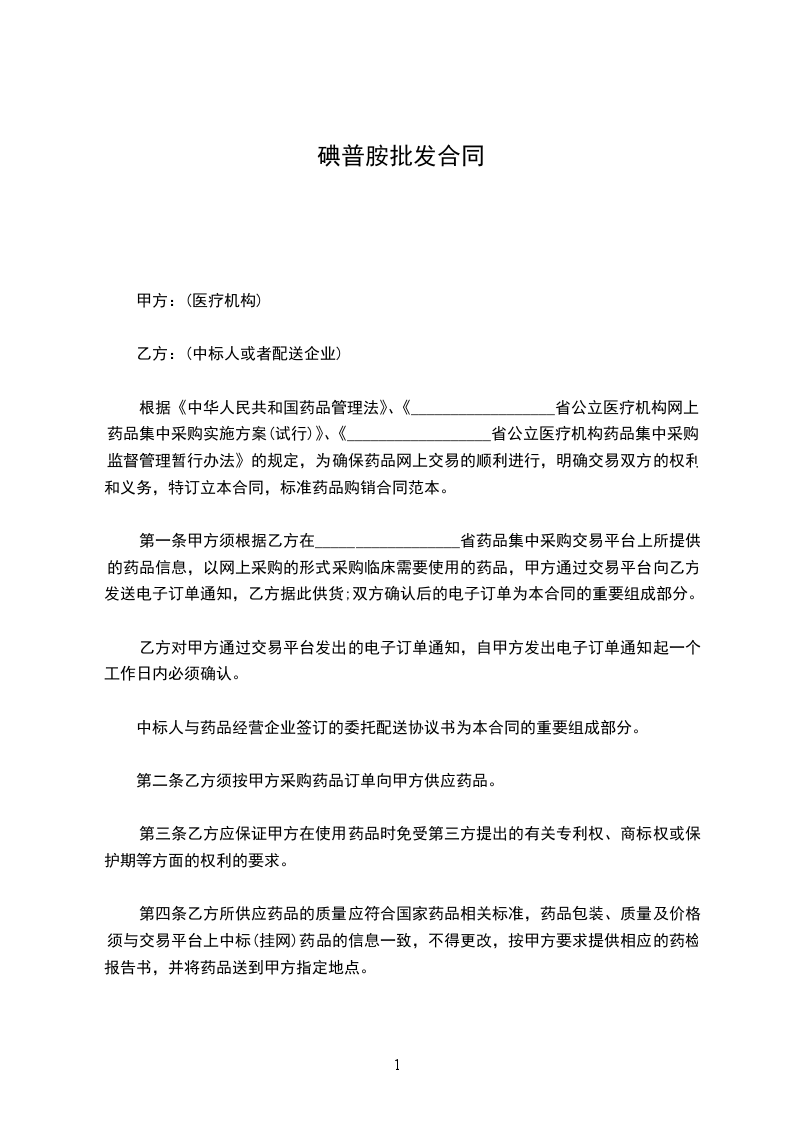 为规范我院药品采购行为,保证医院临床用药及时供应,保障人民用药安全有效,根据《民法典》、《药品管理法》等法律法规,经供需双方友好协商达成如下购销协议: