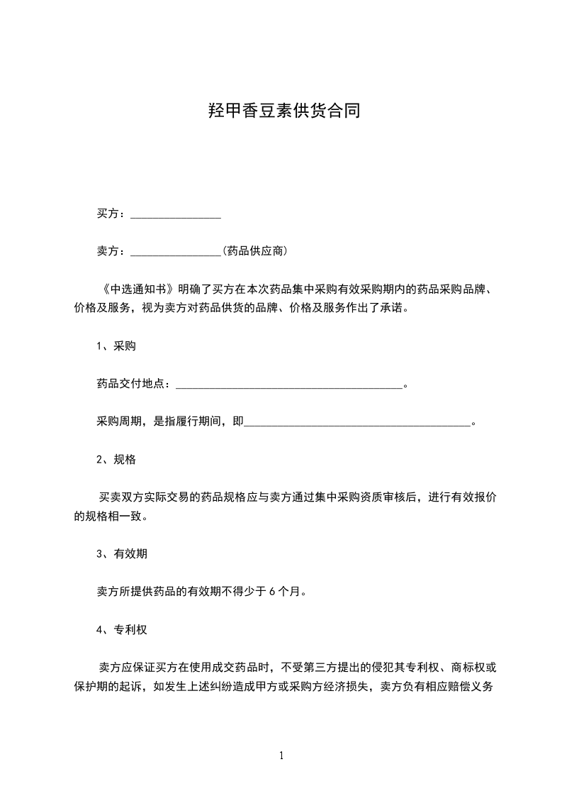 根据《中华人民共和国民法典》,甲、乙双方经协商确定,甲方向乙方购买药品。为明确双方责任和权利,特签订本合同,共同遵守。具体条款如下: