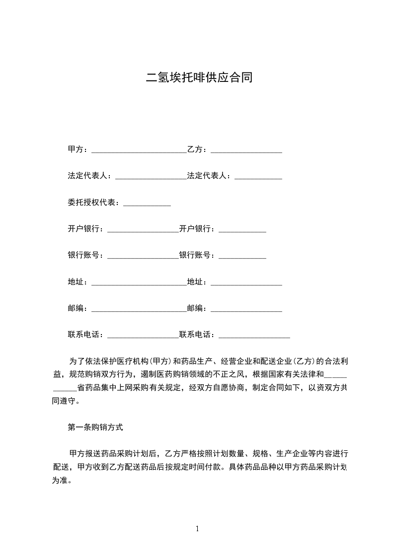 为了依法保护医疗机构(甲方)和药品生产、经营企业和配送企业(乙方)的合法利益,规范购销双方行为,遏制医药购销领域的不正之风,根据国家有关法律和____________省药品集中上网采购有关规定,经双方自愿协商,制定合同如下,以资双方共同遵守。