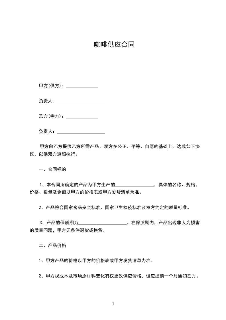 (一)发生下列情况,甲方可向乙方发出书面通知书,提出部分或全部终止合同。