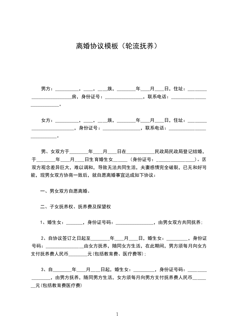 1、婚生女:_______,身份证号码:________________,由男女双方共同抚养;