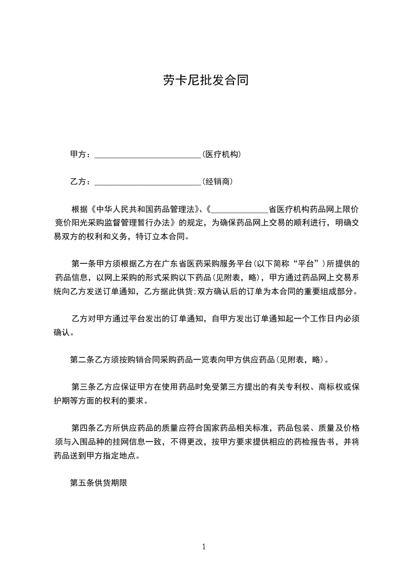 根据《中华人民共和国民法典》,甲、乙双方经协商确定,甲方向乙方购买药品。为明确双方责任和权利,特签订本合同,共同遵守。具体条款如下:
