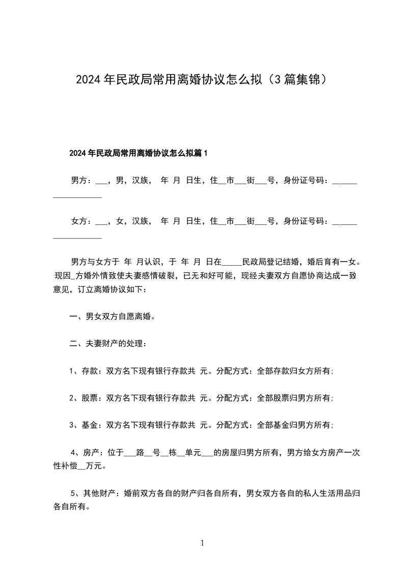 1、【存款】双方婚姻关系存续期间,目前共有存款____元,其中男方账户____元,女方账户____元,双方同意,____方在本协议签订之日起3日内给付____方____元。