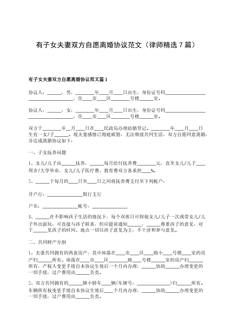 一、本着对孩子负责的态度,两人经协商同意,决定将孩子交由______抚养: