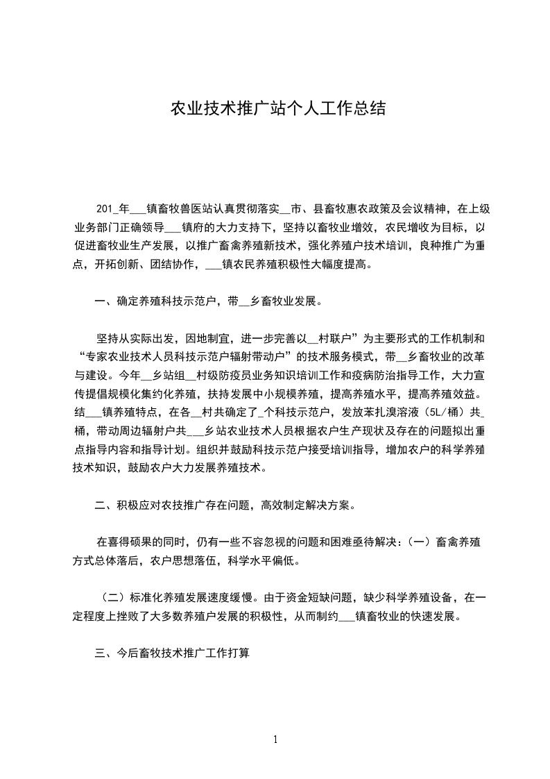 201_年___镇畜牧兽医站认真贯彻落实__市、县畜牧惠农政策及会议精神,在上级业务部门正确领导___镇府的大力支持下,坚持以畜牧业增效,农民增收为目标,以促进畜牧业生产发展,以推广畜禽养殖新技术,强化养殖户技术培训,良种推广为重点,开拓创新、团结协作,___镇农民养殖积极性大幅度提高。