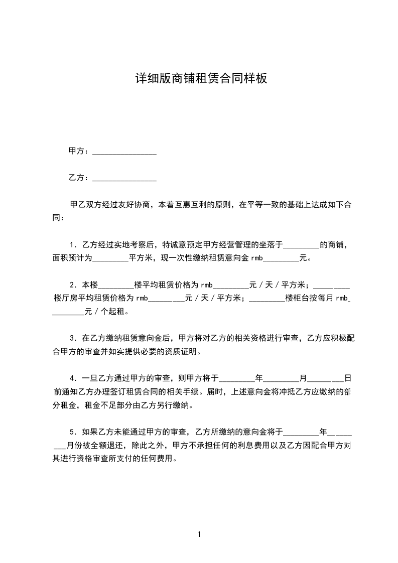 详细版商铺租赁合同样板
