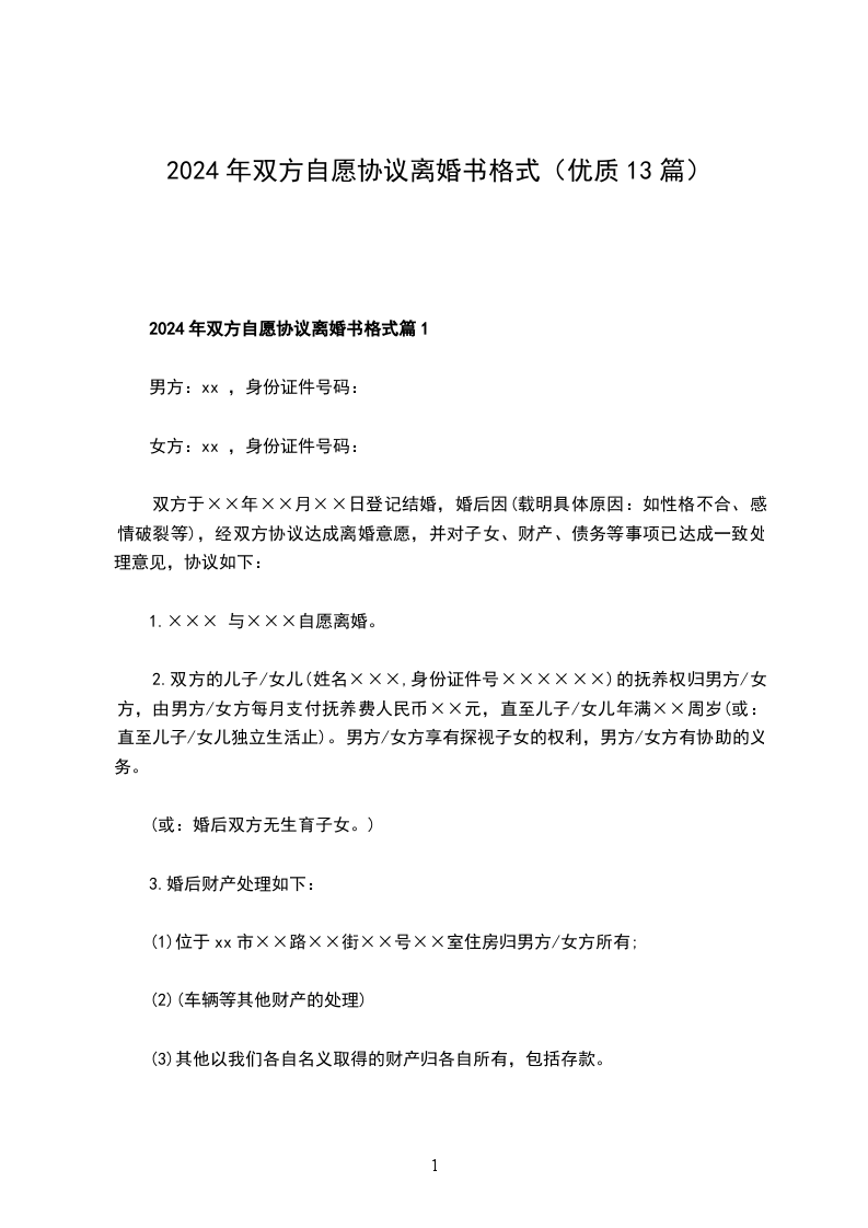 八、本协议一式三份,男、女双方各执一份,婚姻登记机关存档一份。