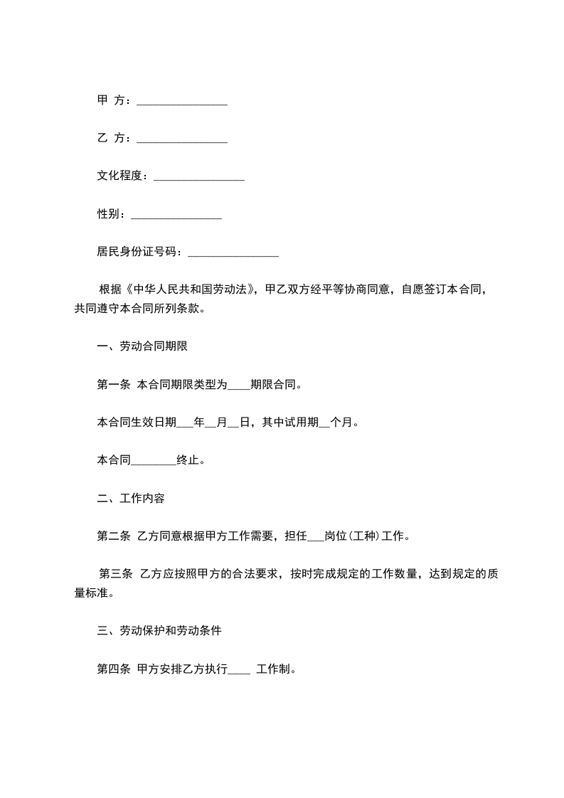 第一条 本合同期限类型为____期限合同。