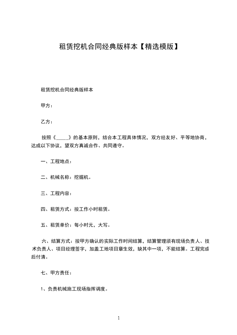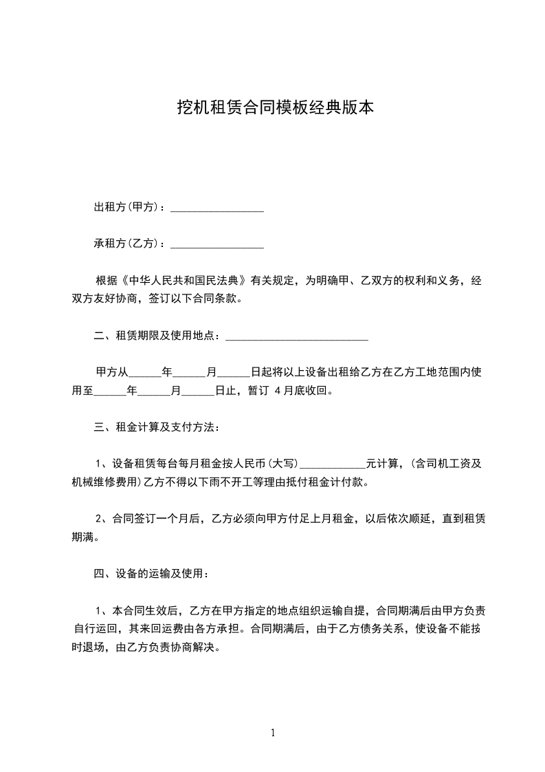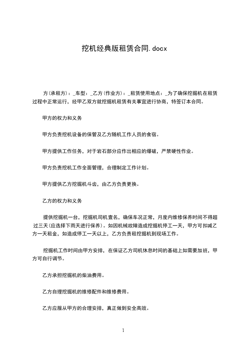 1、设备租赁每台每月租金按人民币(大写)____________元计算,(含司机工资及机械维修费用)乙方不得以下雨不开工等理由抵付租金计付款。