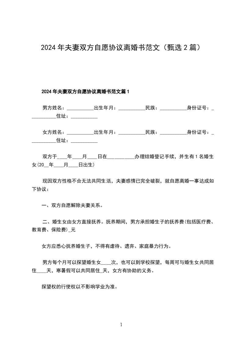 乙方(女方):__________________,女,______年______月______日出生,______族,住__________________,身份证号:__________________