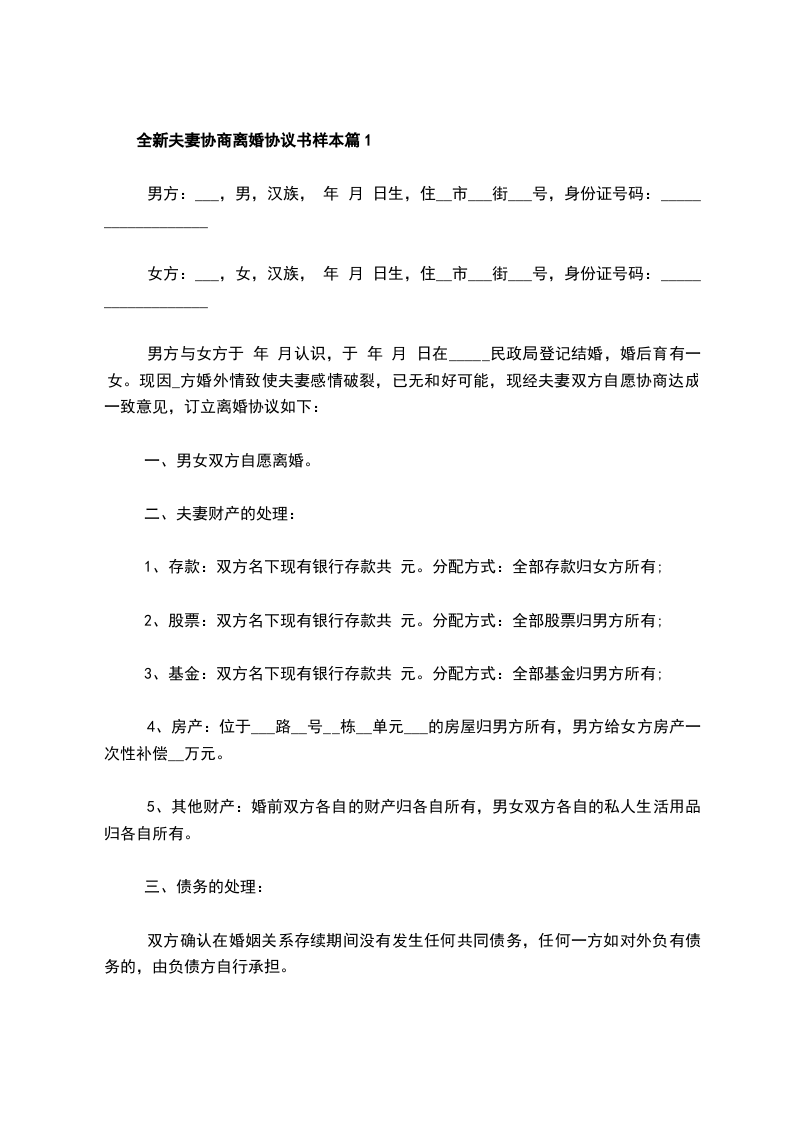 1、【存款】双方婚姻关系存续期间,目前共有存款____元,其中男方账户____元,女方账户____元,双方同意,____方在本协议签订之日起3日内给付____方____元。