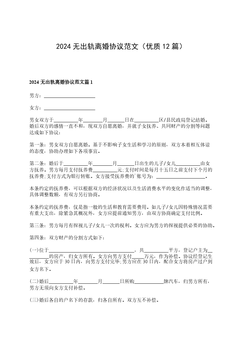 无债权无出轨离婚协议书模板篇12