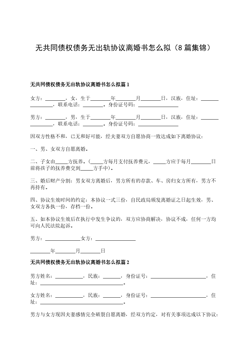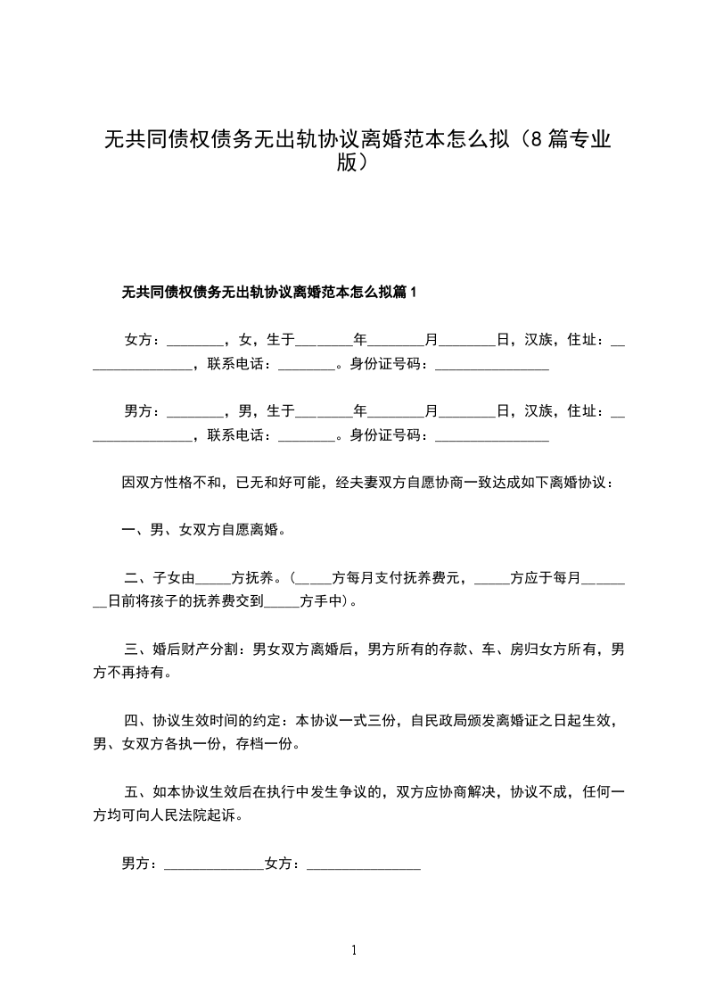 无共同债务无出轨离婚协议怎么拟篇8