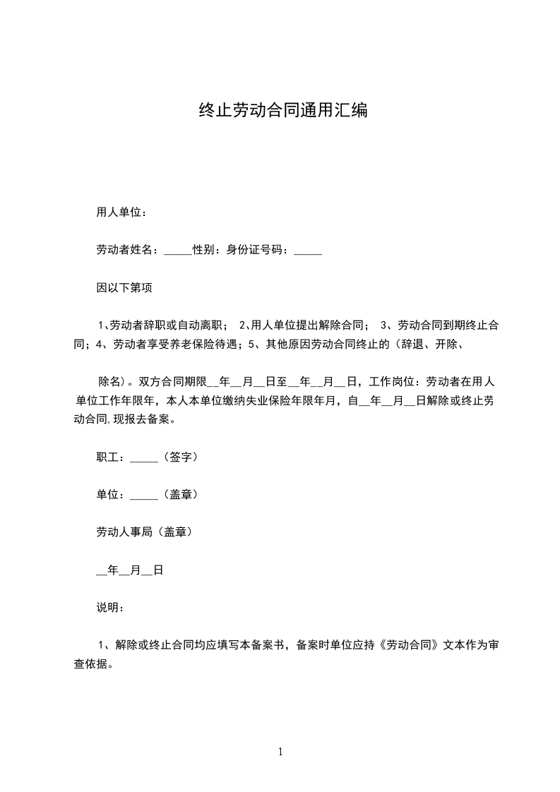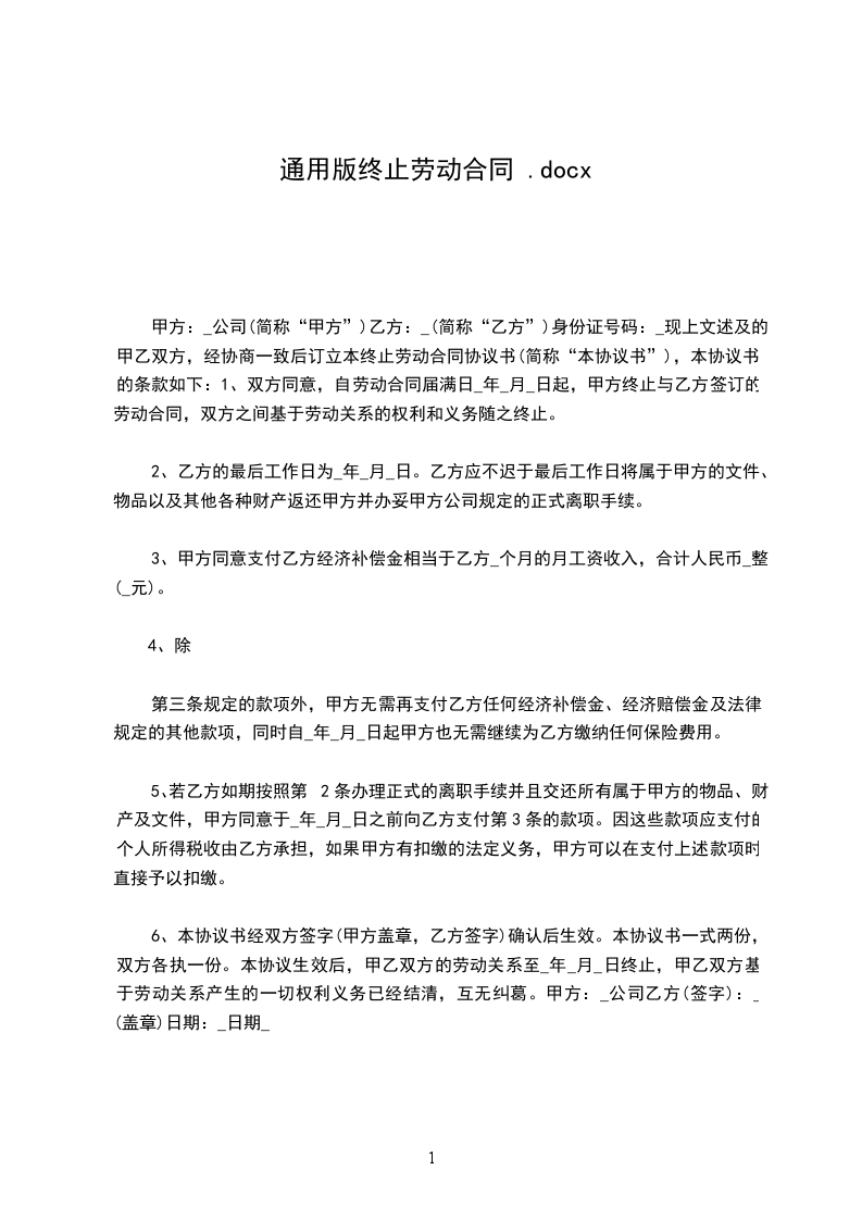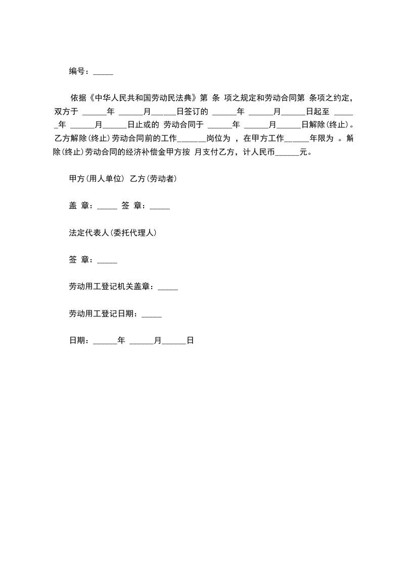 一、甲方与乙方之间的劳动关系于________年____月____日解除。
