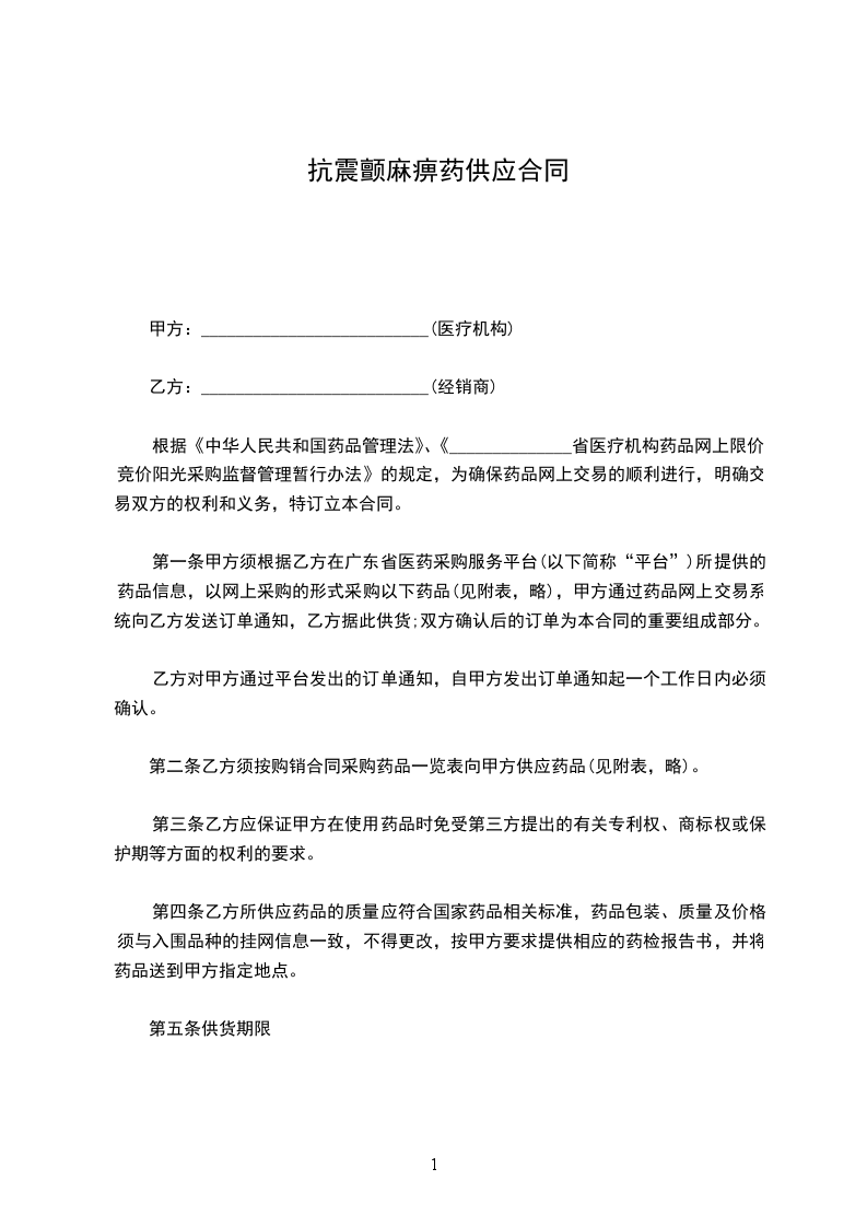为规范我公司药品采购行为,保证药品及时供应,保障人民用药安全有效,根据《民法典》、《药品管理法》等法律法规,经供需双方友好协商达成如下购销协议: