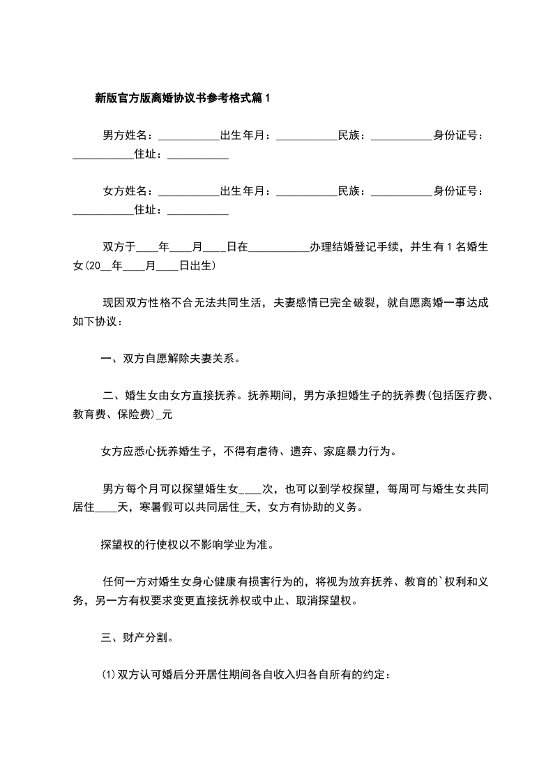 女方姓名:___________出生年月:___________民族:___________身份证号:___________住址:___________