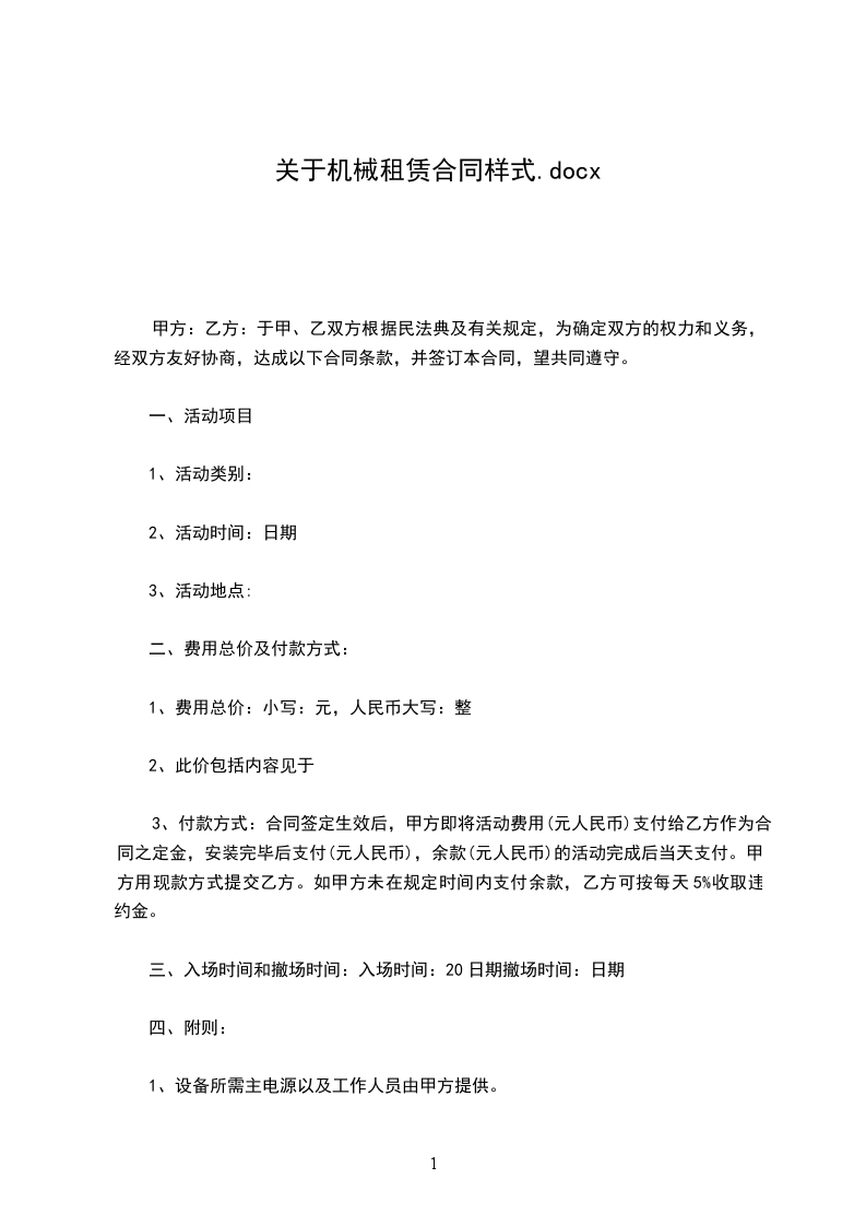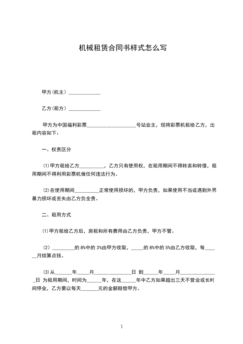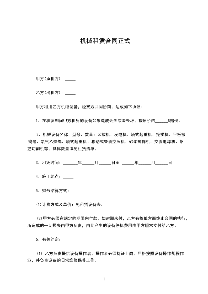 甲方租用乙方机械设备,经双方共同协商,达成如下协议: