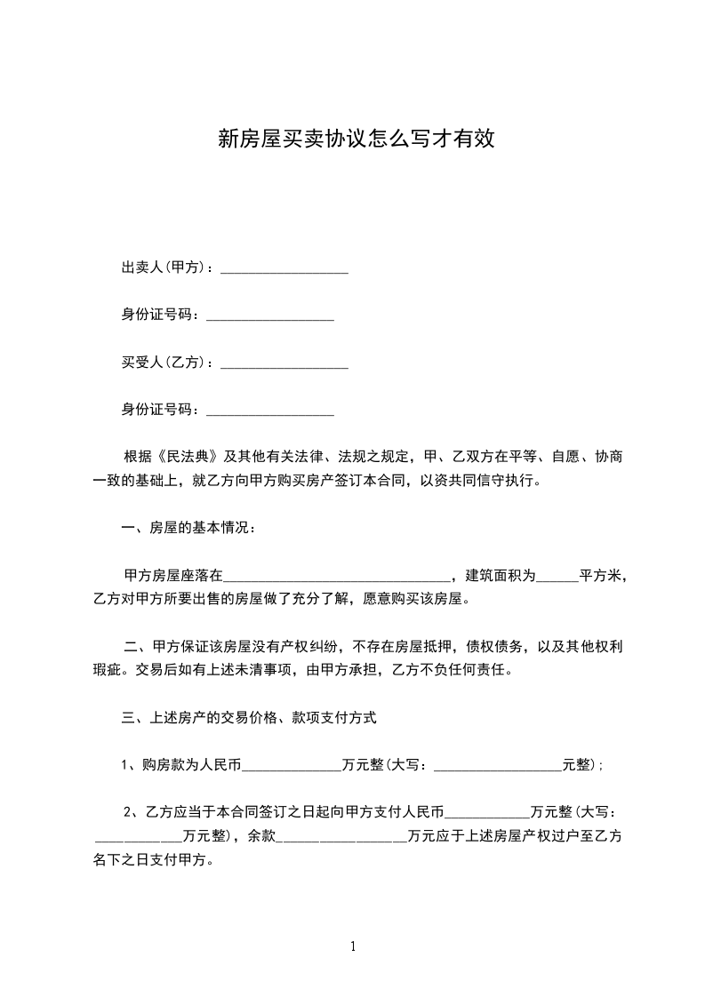 1、甲、乙双方经协商一致,上述房屋(包含第一条第二款列明的配套设施等)总房价款为:________元整(小写:___元)。