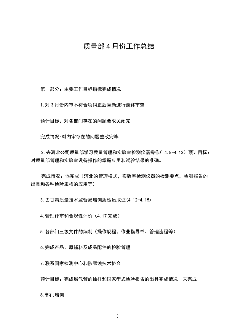 1.原料:四月份PE1级原料共进3批,共114吨。分别是4月1日,N3038吨。4月20日N3038吨(其中过渡料10吨)4月28日N3038吨。均检验合格。