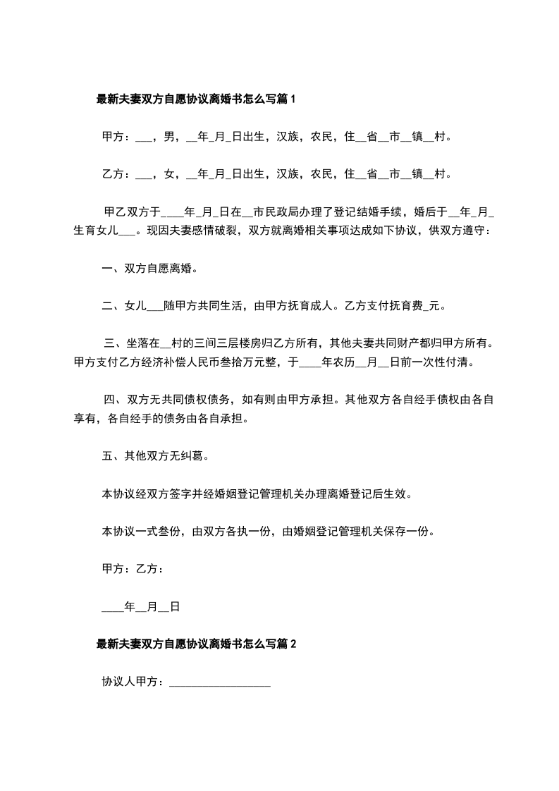 最新夫妻双方自愿离婚协议范文篇2