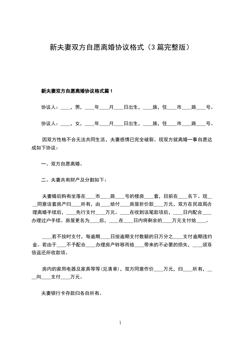 最新夫妻双方自愿离婚协议范文篇1