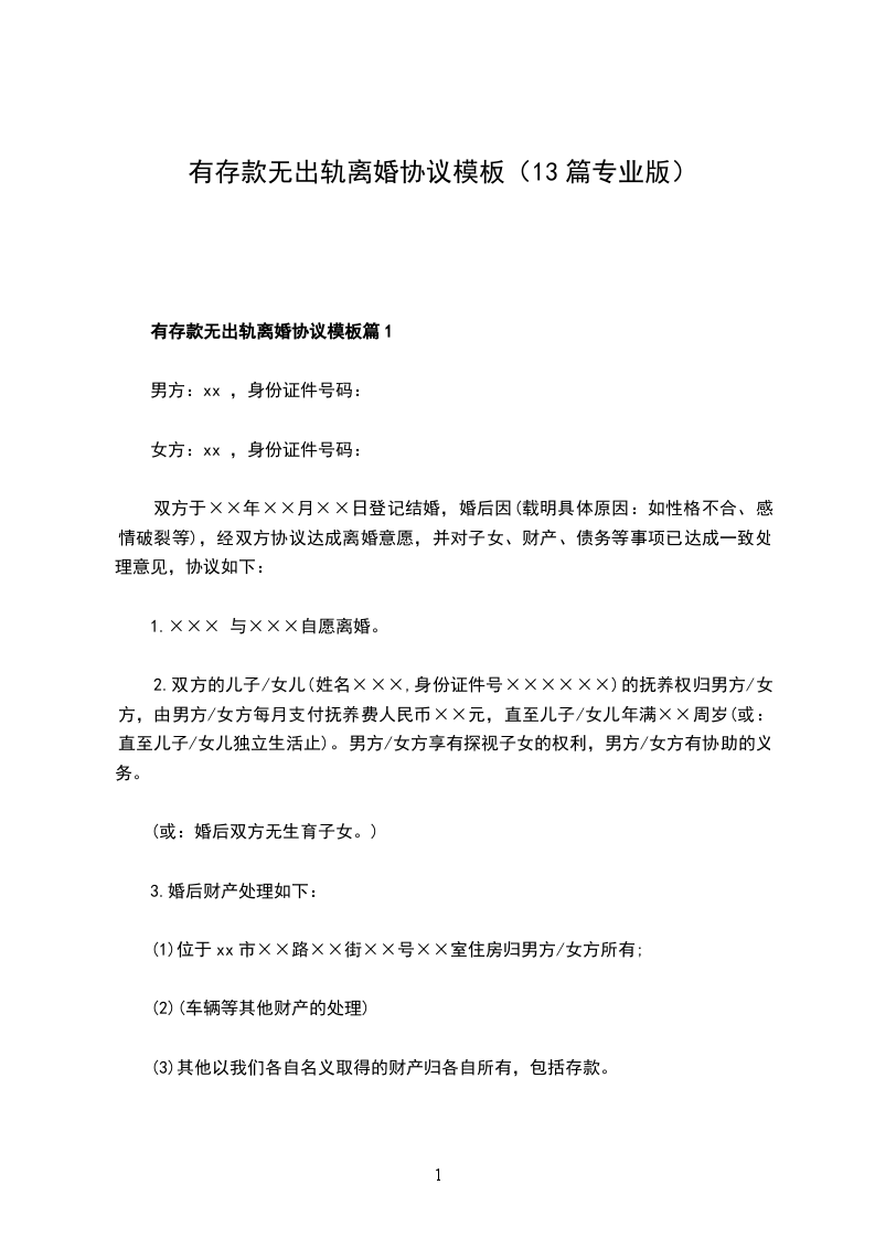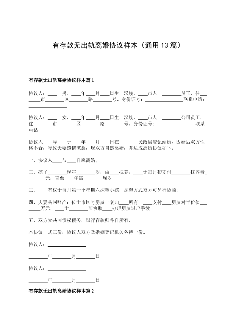 1、 存款:双方确认共同存款 元人民币(大写: ),双方约定于___年___月___日前,甲方分得 元人民币(大写: ),乙方分得 元人民币(大写:);