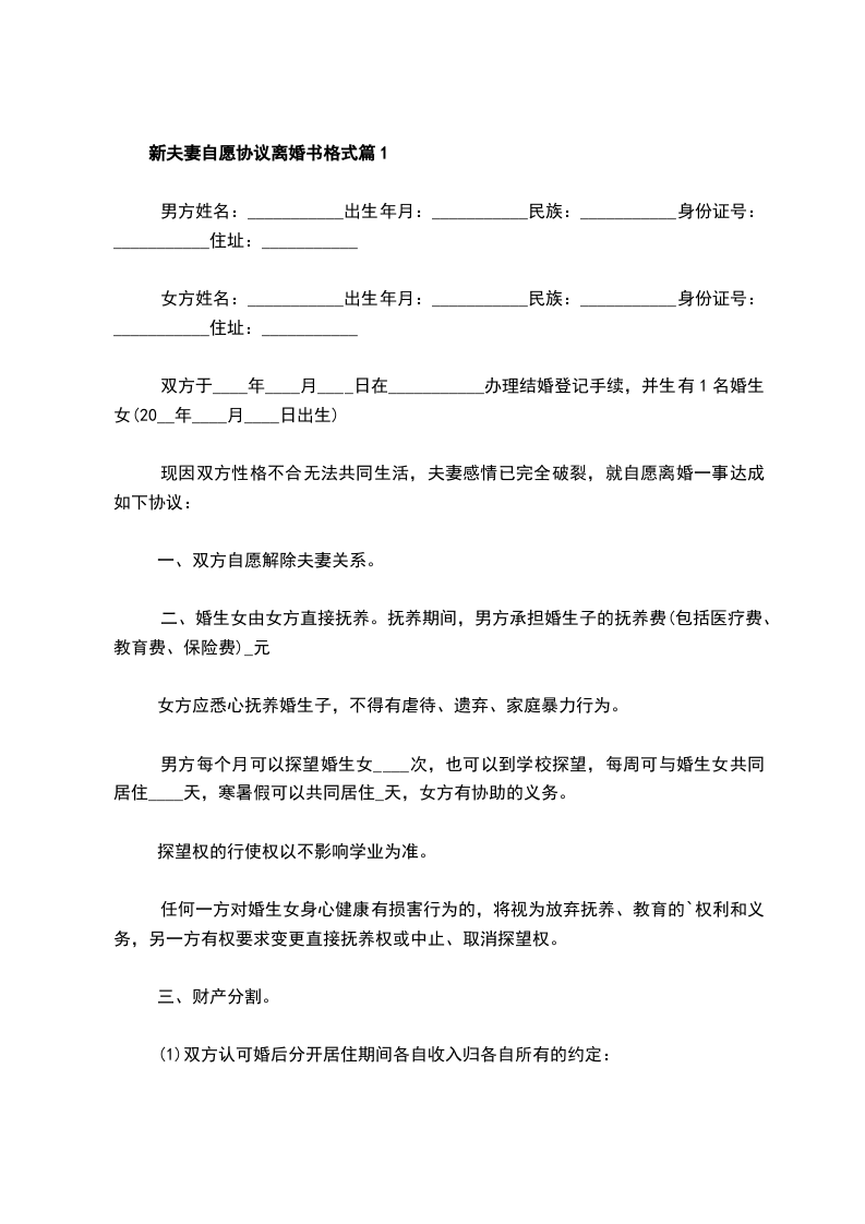 一、________与________自愿离婚,今后各自婚姻互不干涉。