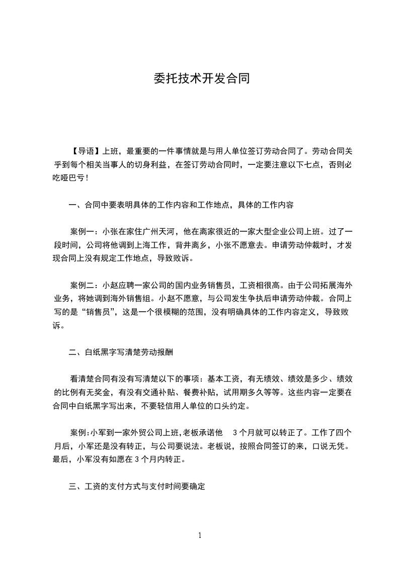 一、合同中要表明具体的工作内容和工作地点,具体的工作内容