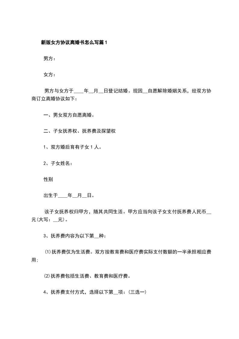 儿子/女儿 由女方抚养,随同女方生活,抚养费(含托养费、教育费、医疗费)由男方全部负责,男方应于 年 月 日前一次性支付 元给女方作为女儿的抚养费(/男方每月支付抚养费 元,男方应于每月的1-5日前将女儿的抚养费交到女方手中或指定的__银行帐号:)。