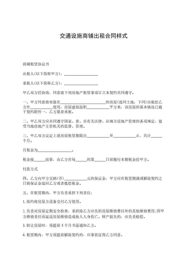 (或3.乙方每(____月、年)缴纳一次租金,乙方以现金形式支付租金。)