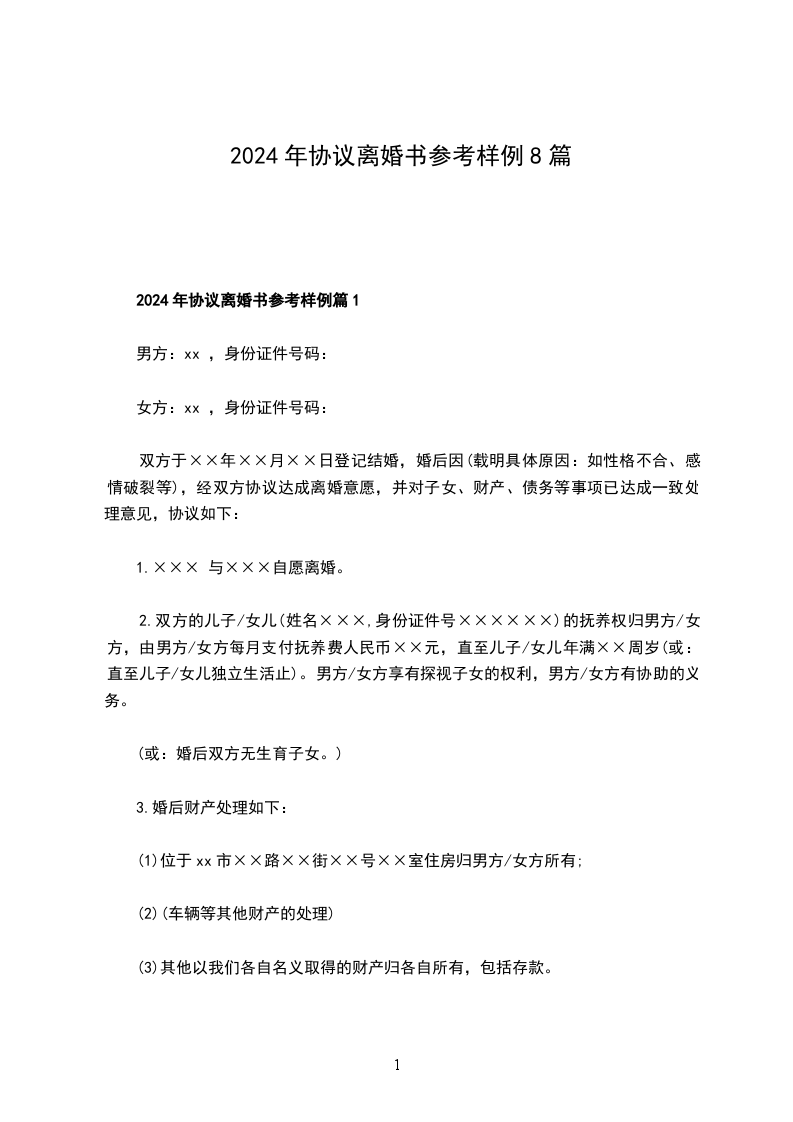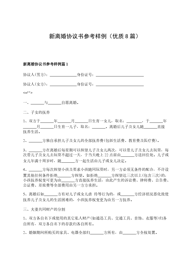 离婚协议参考样例篇8