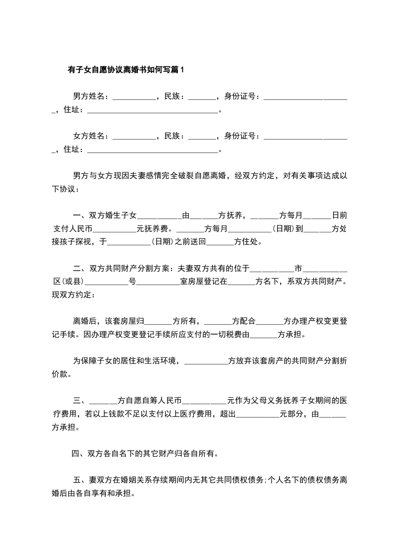 有子女自愿协议离婚书如何写篇5